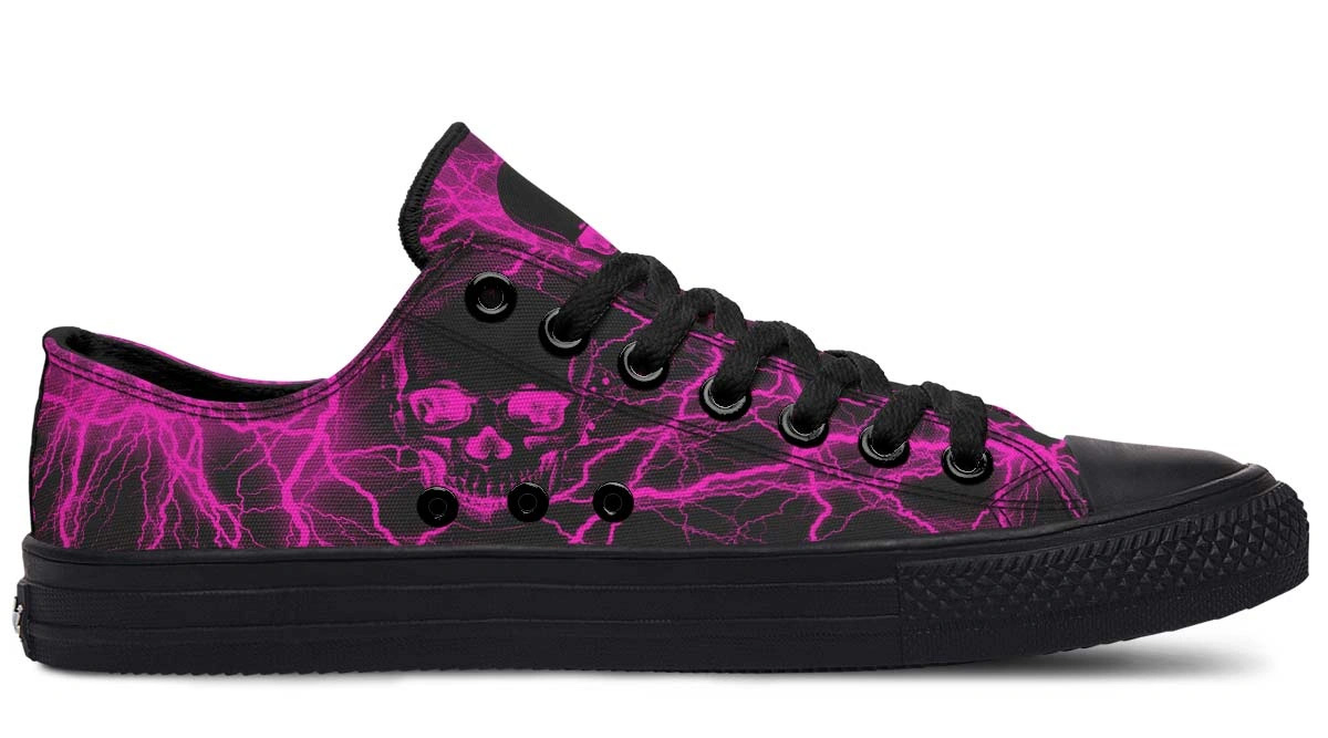 Unleash your rebellious side with our Pink Lightning Skull Art Low-Top Sneakers. These eye-catching shoes feature a unique skull graphic electrified by vibrant pink lightning accents. Designed for comfort and durability, these lightweight sneakers are perfect for daily wear or making a splash at your next event. The edgy design pairs perfectly with jeans or joggers, ensuring you stand out in any crowd. Elevate your footwear collection with this blend of artistic flair and urban style that offers both a snug fit and breathable performance.